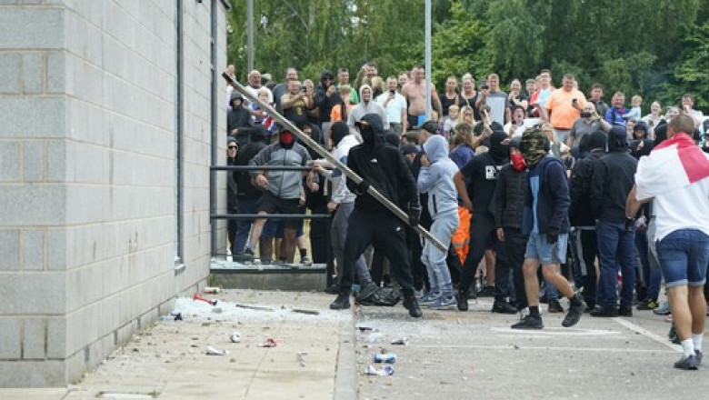Bărbatul de 27 de ani a fost filmat în timp ce punea lemne la un foc în care ardea o pubelă. Aceasta fusese plasată în faţa ieşirii de urgenţă dintr-un hotel care adăpostea migranţi în oraşul Rotherham, din nord-estul Angliei. De asemenea, el a fost filmat în timp ce arunca cu proiectile în poliţie în timpul violenţelor.