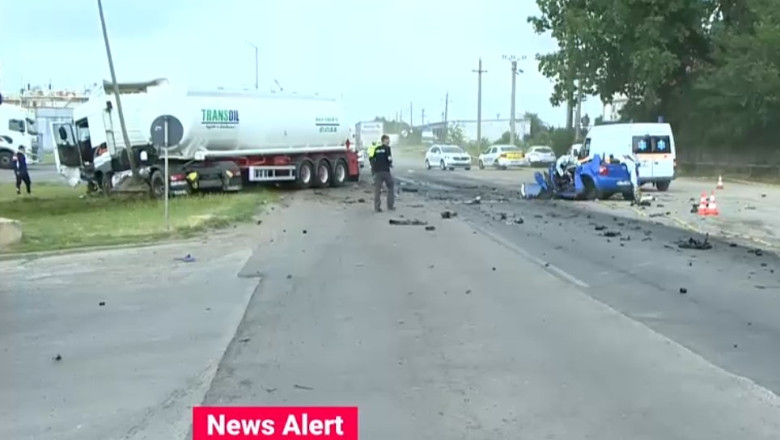 Circulația rutieră este blocată pe ambele sensuri de mers, fiind deviată printr-o parcare din zonă.