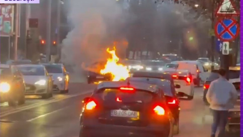 O mașină a luat foc în trafic, în București, pe un bulevard aglomerat.