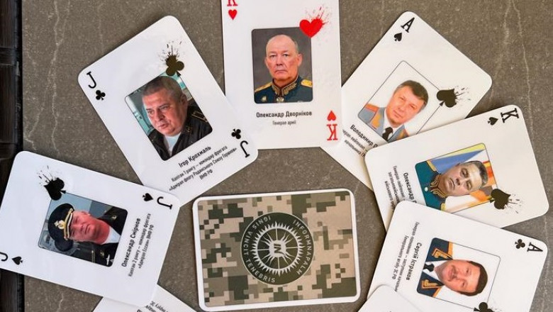 Armata ucraineană a lansat două pachete de cărți de joc cu chipurile unor militari și oficiali ruși pe care îi suspectează de crime de război, relatează BBC.