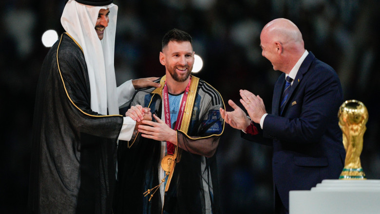 După ce Argentina a cucerit titlul mondial învingând Franţa cu scorul de 4-2 la loviturile de departajare, în finala Cupei Mondiale de fotbal din Qatar, la festivitatea de premiere Messi, care fost desemnat de FIFA cel mai bun jucător al turneului, a fost îmbrăcat cu o mantie neagră de Tamim bin Hamad Al Thani, emirul Qatarului. Scena a generat stârnit critici și nemulțumiri, iar multe voci au spus că Leo Messi nu ar fi trebuit să accepte mantia.