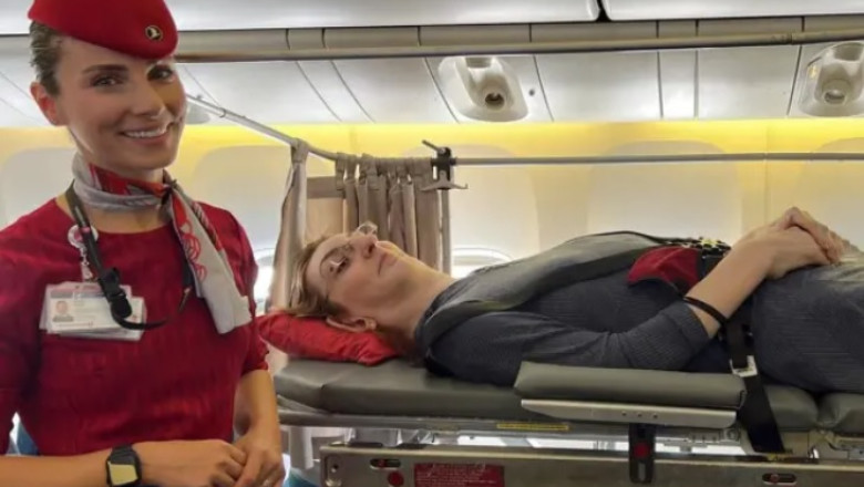 Cea mai înaltă femeie din lume a călătorit pentru prima oară cu avionul. Rumeysa Gelgi a putut face asta după ce compania aeriană a desființat șase locuri și a montat o targă pe care ea să se poată întinde.