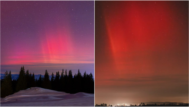 Cerul României a fost iluminat de nuanțe spectaculoase de roșu și violet, tipice aurorei boreale.