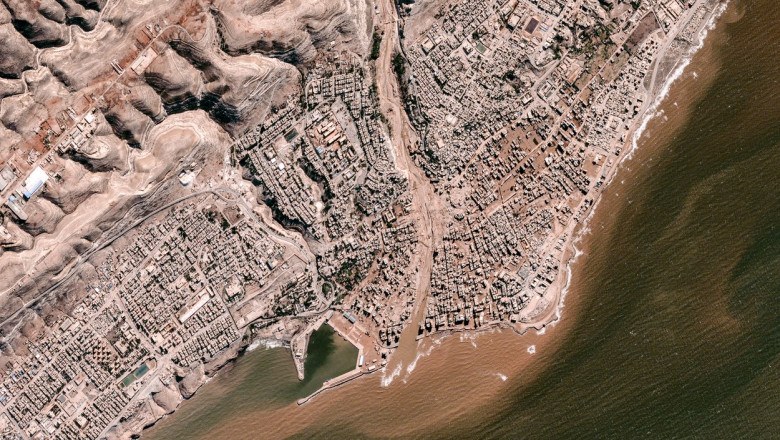 Amploarea dezastrului din Libia a fost fotografiată și din satelit. FOTO: Profimedia Images Deschide galeria foto
