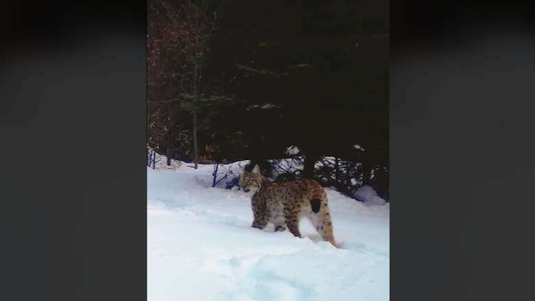 Două feline care trăiesc în Parcul Natural Apuseni au fost surprinse de o cameră video montată în pădure.