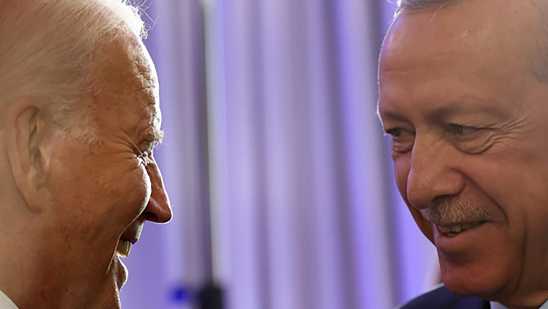 Schimbul de replici relaxat, la care au asistat reporterii, a marcat o schimbare în relaţiile uneori tensionate dintre cei doi aliaţi NATO, Erdogan renunţând la opoziţia sa faţă de candidatura Suediei la alianţa militară, ca parte a unei serii de paşi care au mulţumit SUA şi au supărat Rusia.