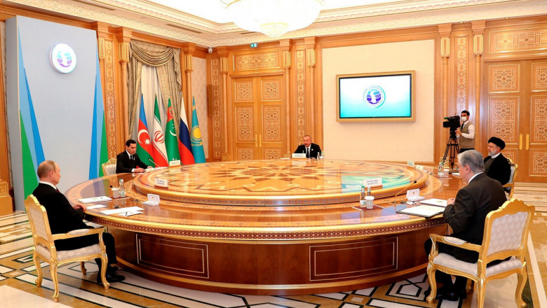 Kremlinul a făcut publice noi imagini cu președintele rus Vladimir Putin la Așgabat, unde a participat la un summit al țărilor de la Marea Caspică. Președintele rus și liderii Azerbaidjanului, Kazahstanului, Iranului și Turkmenistanului stau din nou distanțați la o masă uriașă, de data aceasta rotundă.