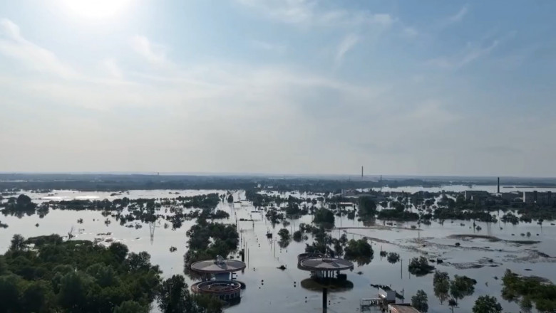 Imagini distribuite pe rețelele sociale arată dezastrul lăsat în urmă de inundații, după prăbușirea barajului Nova Kahovka. Potrivit oficialilor ucraineni, imaginile sunt filmate în orașul Oleșki, ocupat de Rusia, în regiunea Herson, la o zi după ce barajul Kahovka, aflat sub controlul forțelor ruse, a fost distrus.