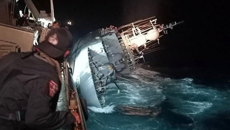 Imaginile și clipurile video publicate pe pagina de Twitter a marinei thailandeze arată vasul căzut pe o parte, și echipe de salvatori în bărci căutând supraviețuitori în apele agitate.