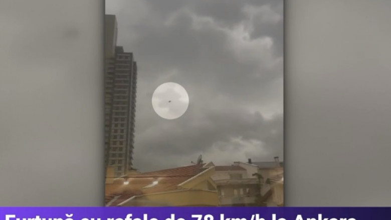 O furtună deosebit de puternică a lovit Ankara, iar rafalele de vânt au luat pe sus obiecte și au distrus un minaret.