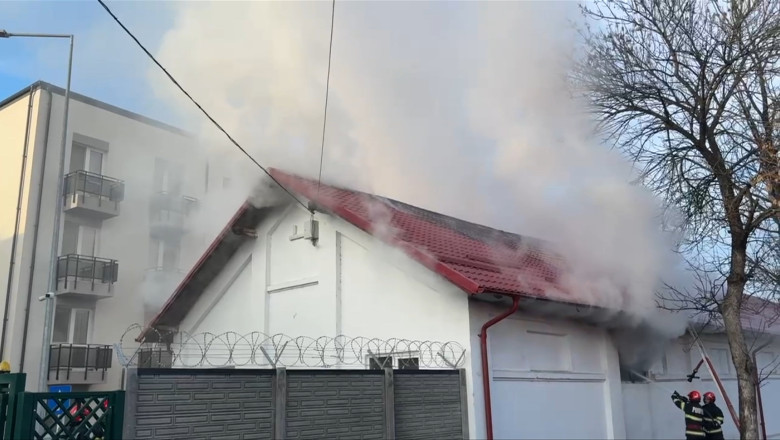 La faţa locului s-au deplasat patru autospeciale cu apă şi spumă şi autospeciala de lucru la înălţime.