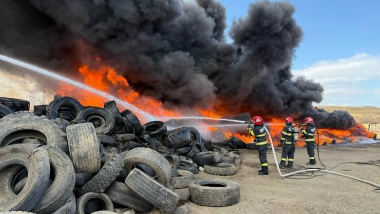 Un incendiu puternic a izbucnit, vineri, la un depozit de anvelope uzate din municipiul Tulcea. Din cauza degajărilor mari de fum a fost emis mesaj RO-Alert. Potrivit autorităților, nu există victime.