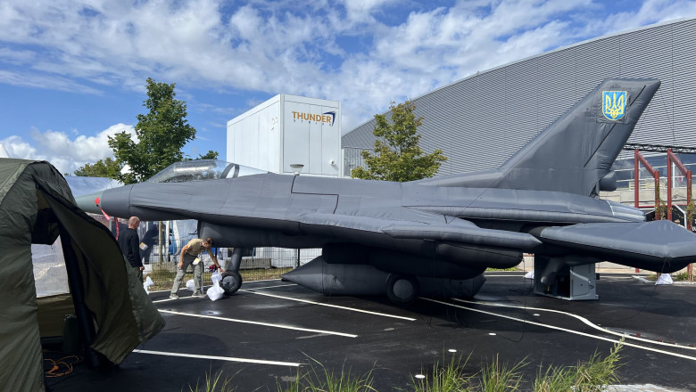 Momeala F-16 cu însemne ucrainene de la compania cehă Inflatech este expusă în prezent la expoziția de apărare Industry Days din Danemarca, organizată de Ministerul danez al Apărării - Organizația pentru Achiziții și Logistică (DALO).