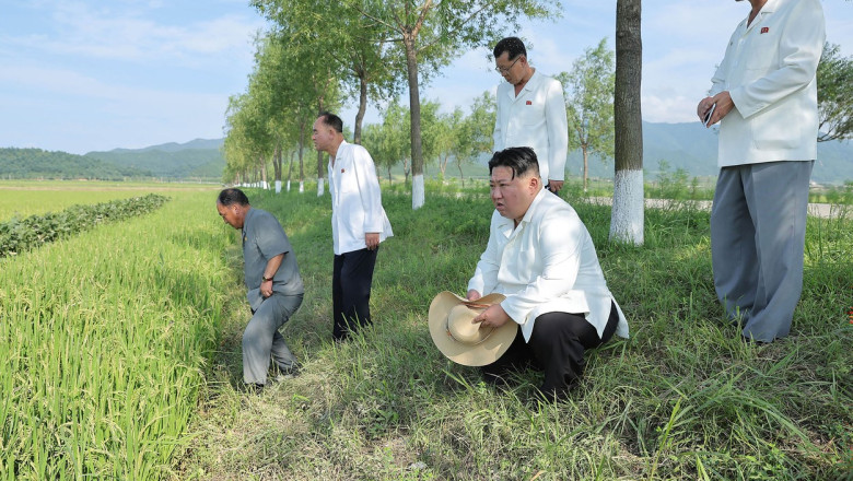 Liderul nord-coreean Kim Jong Un a vizitat ferme afectate de furtuna Khanun. FOTO: Profimedia Images Deschide galeria foto