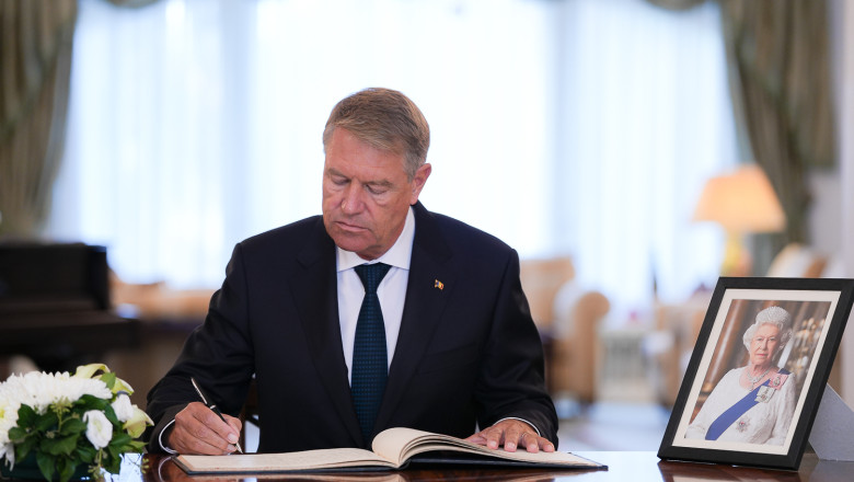 Preşedintele Klaus Iohannis a semnat, marţi, în cartea de condoleanţe deschisă în memoria Reginei Elisabeta a II-a la reşedinţa ambasadorului Regatului Unit al Marii Britanii şi Irlandei de Nord în România, a anunţat Administraţia Prezidenţială.