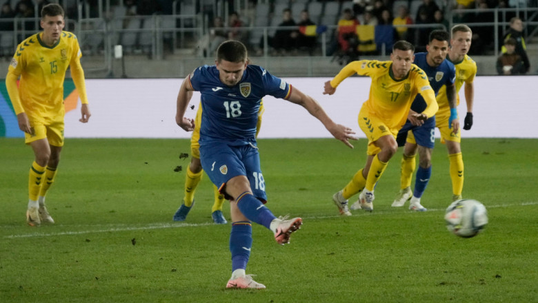 Naţionala de fotbal a României a învins greu echipa Lituaniei, cu scorul de 2-1 (1-1), marţi seara, pe Stadionul Dariaus ir Gireno din Kaunas, în Grupa a 2-a din Liga C a Ligii Naţiunilor.
