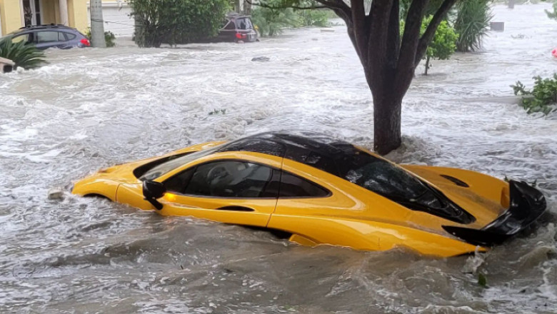 Imagini cu un McLaren P1 galben - un vehicul de lux care poate depăși 350 de kilometri pe oră și poate ajunge de la 0 la 100 km/oră în doar 2,2 secunde - înghițit de ape au fost postate pe Instagram de proprietarul său, Ernie, potrivit Yahoo News.
