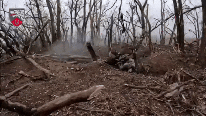 Luptătorii ucraineni au luat cu asalt o rețea de tranșee și buncăre rusești dintr-o zonă neprecizată a frontului ucrainean. Militarii sunt filmați în timp ce aruncă grenade și trag rafale de foc automat asupra pozițiilor rusești.