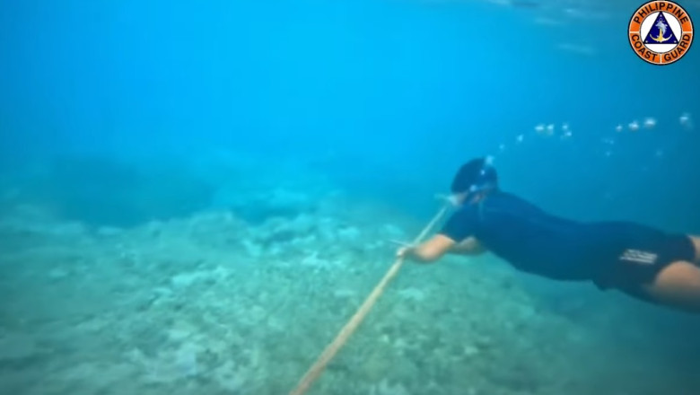 O înregistrare video publicată luni de Paza de Coastă filipineză arată cum un scafandru filipinez taie un șir de geamanduri lung de 300 de metri lângă Bajo de Masinloc, cunoscut și sub numele de Scarborough Shoal, un recif mic, dar strategic și rodnic pentru pescuit, aflat la 200 de kilometri de insula filipineză Luzon.