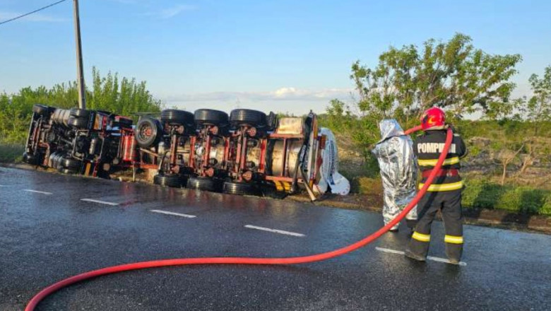 Pompierii acţionează pentru asigurarea măsurilor de prevenire a incendiilor şi curăţarea carosabilul de elementele rezultate în urma evenimentului rutier, respectiv combustibil şi substanţă care s-au scurs din cisternă, pentru reluarea cât mai rapidă a traficului în zonă.