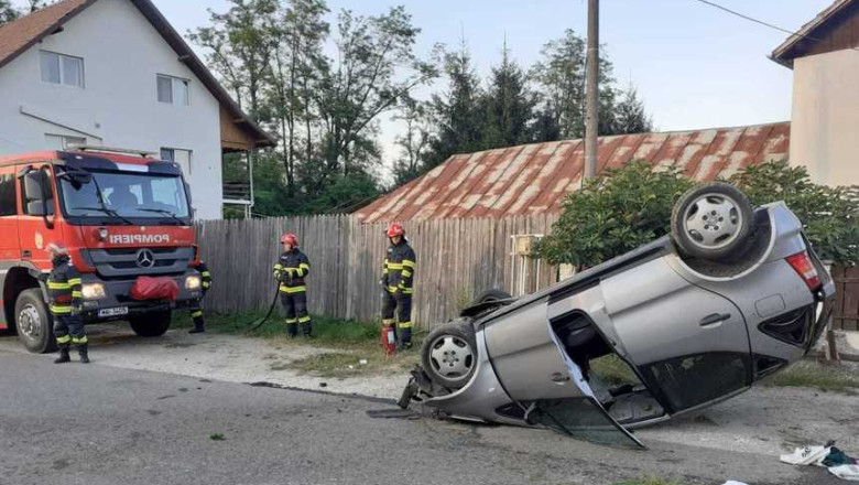 Un autoturism a derapat şi s-a răsturnat în afara şoselei, acroşând o conductă de alimentare cu gaz metan.