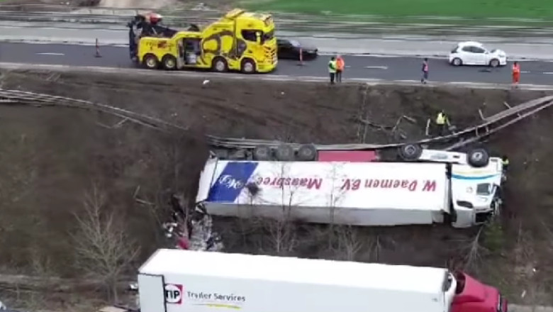 Şoferul unui autotren a pierdut controlul asupra direcţiei de mers, iar TIR-ul a ieşit de pe şosea, pe centura ocolitoare a Braşovului, a rupt parapetul de pe margine şi s-a răsturnat. În zonă a fost adusă o macara pentru ridicarea autotrenului rămas pe o parte, la o diferenţă de nivel de câţiva metri.