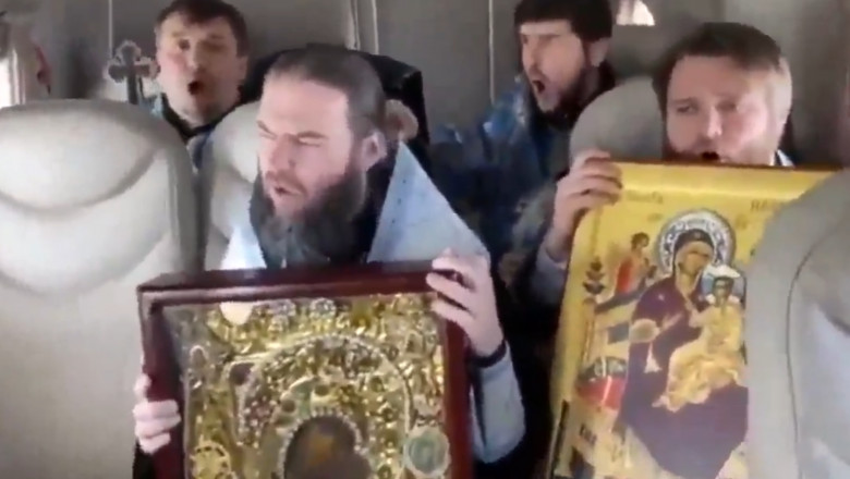 Autoritățile din Rusia apelează la ajutorul divin ca să scape de inundațiile de proporții. Un grup de preoți a fost trimis să survoleze zonele amenințate de inundații. În imaginile distribuite online, doi dintre ei țin în brațe icoane mari și par să se roage pentru ca dezastrul să nu se extindă.