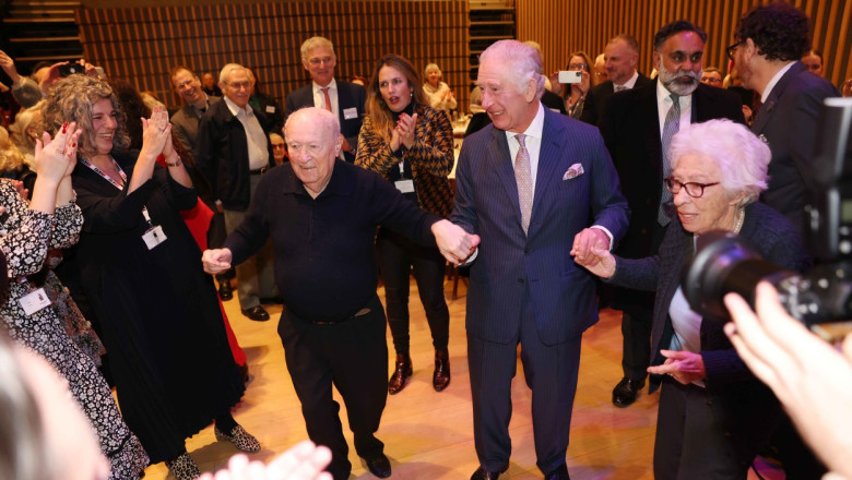 Regele Charles al Marii Britanii a dansat cu sora vitregă a Annei Frank în timpul unei vizite la un centru comunitar evreiesc din nordul Londrei.