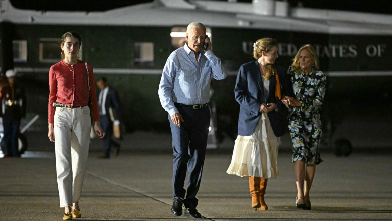 Biden şi-a petrecut ziua cu prima doamnă Jill Biden, copiii şi nepoţii săi. A fost o deplasare programată anterior la reşedinţa prezidenţială din Maryland pentru o şedinţă foto cu Annie Leibovitz pentru viitoarea Convenţie Naţională Democrată.