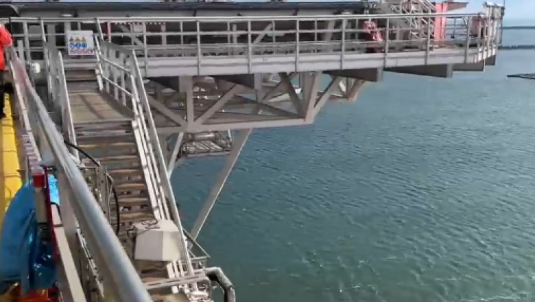 Sebastian Boldea, jurnalist Digi24: Aceasta este turla de forare, se lucrează acum pentru a se repune în pozitia inițială, după ce ea a fost rabatată pentru a putea trece prin strâmtoarea Bosfor.