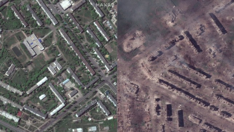 Compania Maxar Technologies a publicat imagini din satelit de înaltă rezoluție care arată din unghiuri similare felul în care arăta orașul ucrainean Bahmut în urmă cu un an și ruinele la care a fost redus acum, în urma bombardamentelor rusești.