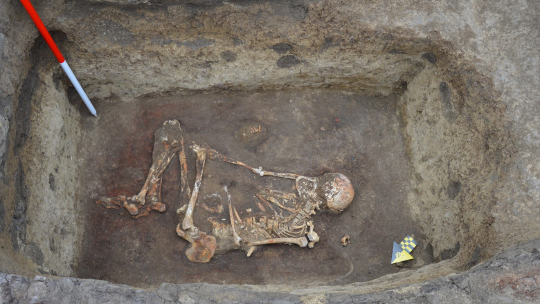 Scheletul, despre care arheologii spun că aparține culturii Yamnaya, a fost descoperit pe raza comunei Drăguşeni, județul Botoșani.