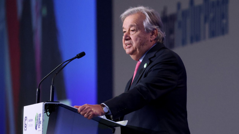 De asemenea, Guterres i-a îndemnat pe liderii de la conferinţa privind climă COP28 să convină asupra reducerilor profunde ale emisiilor şi să oprească încălzirea globală care depăşeşte 1,5 grade Celsius (2,7 grade Fahrenheit).