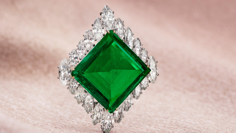 „Smaraldul este extrem de fin şi de plat, ceea ce îl face să pară o piatră de 50 de carate”, a explicat Fawcett. „Pietrele plate tind să îşi piardă culoarea în centru, dar aceasta este de un verde complet uniform”, a subliniat specialistul.