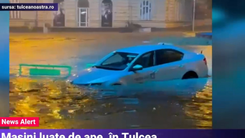 O ploaie de câteva minute a transformat orașul Tulcea într-o mică Veneție. Canalizarea nu a mai făcut față, iar străzile s-au transformat în râuri.