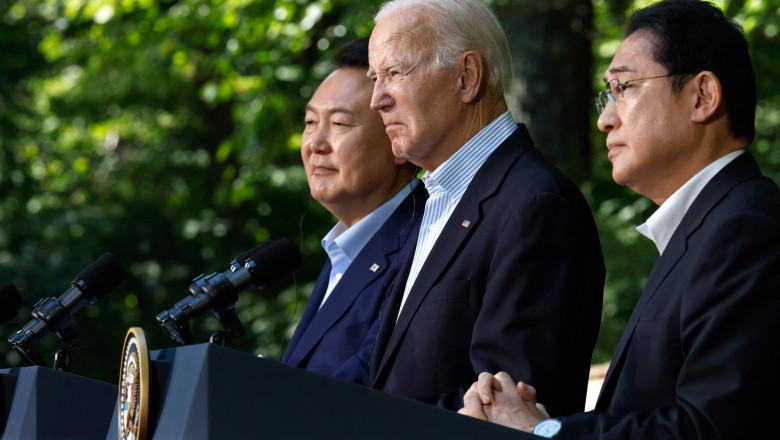 Administraţia Biden a organizat summitul cu liderii principalilor aliaţi ai SUA din Asia, preşedintele sud-coreean Yoon Suk Yeol şi premierul japonez Fumio Kishida, cu intenţia de a proiecta ideea de unitate în faţa ascensiunii Chinei şi a ameninţărilor nucleare din partea Coreei de Nord.