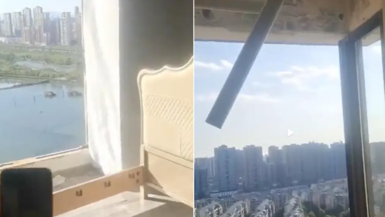 Partenerul femeii, identificat doar cu numele Wan, le-a spus reporterilor locali că s-a trezit în jurul orei 3 dimineața din cauza furtunii și a descoperit că rafale au spart panourile din sticlă din balcon.