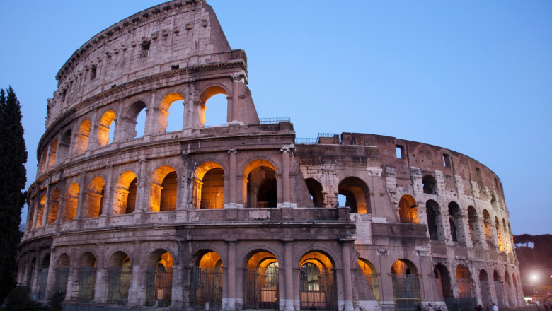 Colosseum-ul, un amifteatru din perioada Imperiului Roman, a cărui construcție s-a finalizat în anul 80 e.n., în timpul domniei împăratului Titus (79-81), este locul în care se organizau luptele de gladiatori.
