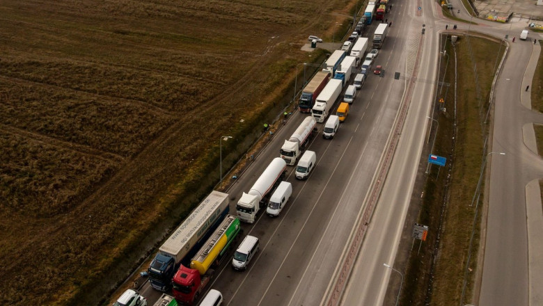 Michan Derus, purtător de cuvânt al Camerei de Administrare Fiscală din oraşul polonez Lublin, a declarat agenţiei France Presse că în prezent sunt 600 de camioane care aşteaptă să iasă din Polonia pe la Dorohusk, iar timpul de aşteptare estimat este de circa 232 de ore. Din Ucraina nu a intrat în Polonia niciun camion, deci „trebuie să presupunem că este vorba de o blocadă totală”, a afirmat el.