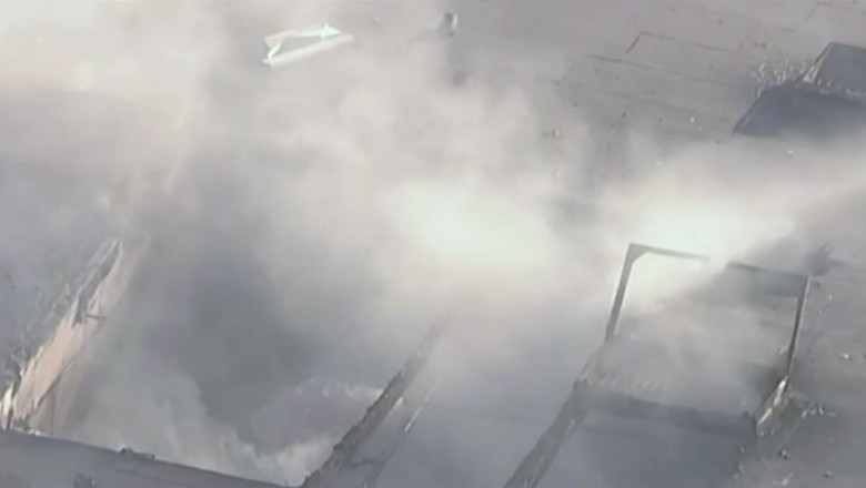 Fotografii făcute din aer arată părţi ale avionului în interiorul clădirii. Prăbuşirea a provocat şi un incendiu care a fost stins de pompieri.