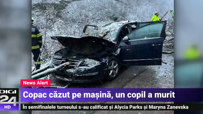 Un băiat de 14 ani a murit după ce mașina în care se afla a fost lovită de un copac doborât de vântul puternic, în această după-amiază, la intrarea în Reșița.
