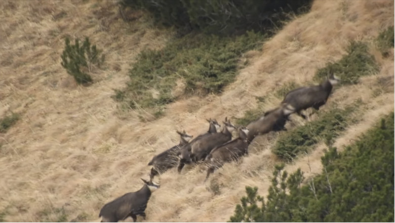„Grup mare de capre negre, însoțite de iezi, în Parcul Natural Bucegi, într-o filmare realizată de colegul nostru Vali Bălan.