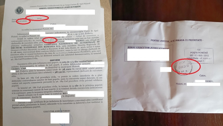 Potrivit documentelor obținute de jurnaliștii de la Observatorul Prahovean, procesul verbal de constatare a contravenției datează din 2011, dosarul de executare silită a fost întocmit în 2014, și, 9 ani mai târziu, în 2023, bărbatul a primit înștiințarea că este executat silit din cauza unei datorii către Compania Națională de Autostrăzi și Drumuri Naționale din România.