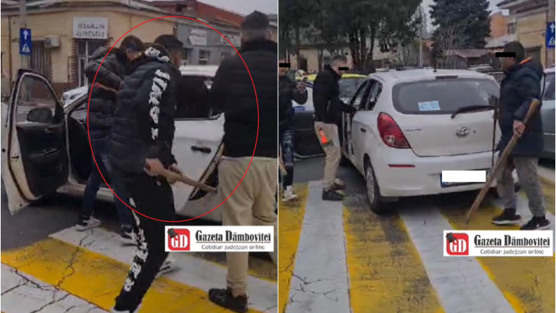 Bărbat atacat cu bâte și topoare în plină stradă, în Ploiești. Sursa foto: captură video Gazeta Dâmboviței Deschide galeria foto