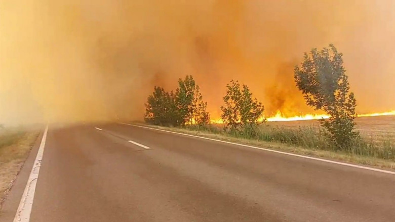 Potrivit sursei citate, din cauza unui incendiu de vegetație uscată, care se manifestă în apropierea drumului european E70 pe un front de 300 ml și pe aproximativ 50 de ha de miriște, cu degajări de fum pe carosabil, circulația rutieră este oprită pe ambele sensuri de mers.