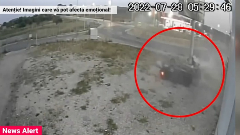 Mașina pe care o conducea a fost aruncată la câțiva metri înălțime, s-a izbit într-un stâlp, apoi a căzut în curtea unei reprezentanțe auto.