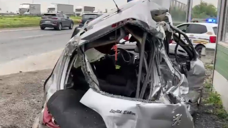 Sebastian Boldea jurnalist Digi24: În această mașină se aflau tatăl și copilul său, în momentul în care ar fi întors pe linie dublă continuă chiar pe centura Capitalei. În acel moment, impactul a fost iminent, iar o dubă i-a lovit din lateral. Așa cum vedeți, mașina a fost lovită atât de puternic încât în momentul de față ea s-a strâns practic la jumătate. Tatăl a murit pe loc. Copilul este în stare gravă la spital.Reporter: Tu ce ai auzit? Tânăr: O bubuitură și apoi elicopterul...Bărbat: A întors aici în curbă, pe linie continuă, și ăla cu duba a intrat în el, avea viteză mare...
