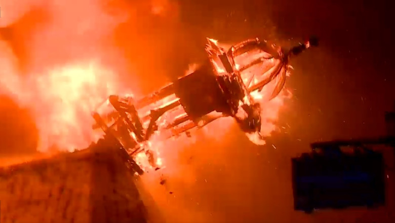 ACTUALIZARE ORA 24:00 Mai multe bucăți din acoperiș au început să cadă și inclusiv o turlă s-a prăbușit, după ce incendiul s-a extins pe o suprafață mai mare a mansardei, din cauza vântului.