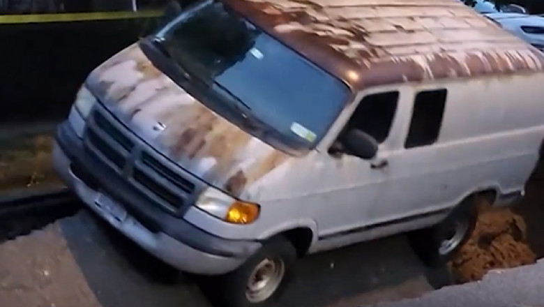 O groapă a apărut în asfaltul unei străzi din New York, luni, înghițind o dubă parcată acolo. Metropola americană se confruntă cu ploi și vânt puternic, relatează The New York Times.