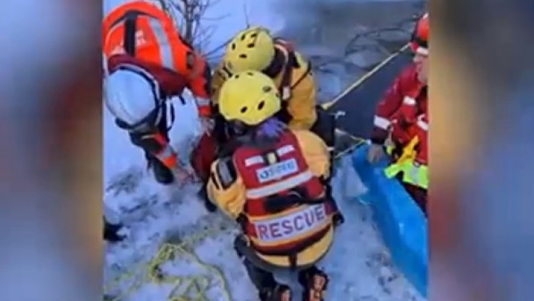 Inițial, aceștia au încercat să salveze câinele cu o scară, dar nu au reușit. Apoi au folosit un dispozitiv gonflabil pentru a-l aduce înapoi în siguranță pe uscat.